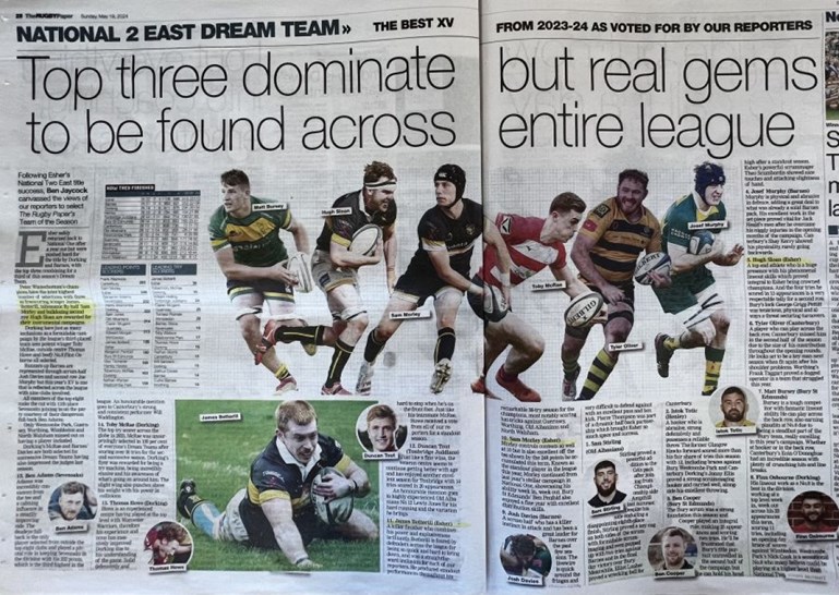 Esher Rugby is proud that 3 of our 1st XV players; James Botterill, Sam Morley & Hugh Sloan, were selected by The Rugby Paper reporters as part of their dream team.