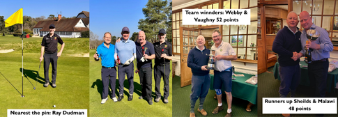 The ERGS members gathered at 8.00 for coffee and bacon rolls and timings, rules and regulations quickly agreed. It was even possible to re gig groups for a late arrival. Playing on the “bogey” card scoring was as expected with Tim Christopher and Ray Dudman scoring very well. However the winner of the Alan Prentice was Mike “Malawi” Goodall (after some controversy that is best left with him). Nearest the pin was Ray Dudman and longest drive was Jonathon Webb.