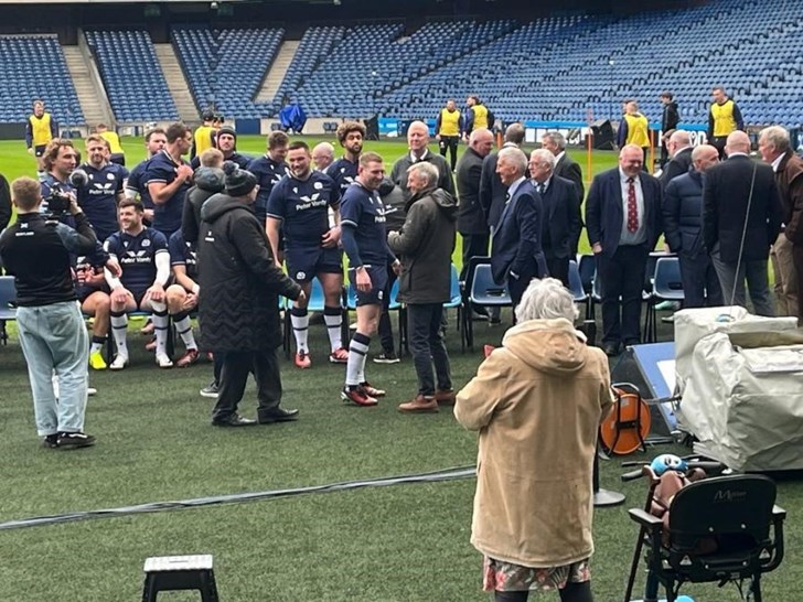 In a brilliantly orchestrated ceremony on a glorious day in Edinburgh, Hugh was among several players from the 1970s to receive their caps, be welcomed by Scotland coach Gregor Townsend, and then spend time on the pitch with the team.